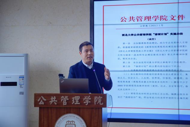 雷晓康院长从授课纪律、论文指导、课程建设等角度指出了MPA教学中存在的问题并提出加强督导、全面聘课等整改措施。李尧远副院长公布了学院课程思政建设的“春雨计划”、鼓励老师同步实践前沿的“躬行计划”以及案例库建设的实施办法,激励老师们全方位、全身心投入本科教学。翟绍果副院长反馈了研究生教学督导组反映的在研究生培养中存在的问题,并从研究生学习积极性、授课方式、学位论文质量管理等角度提出了整改重点。