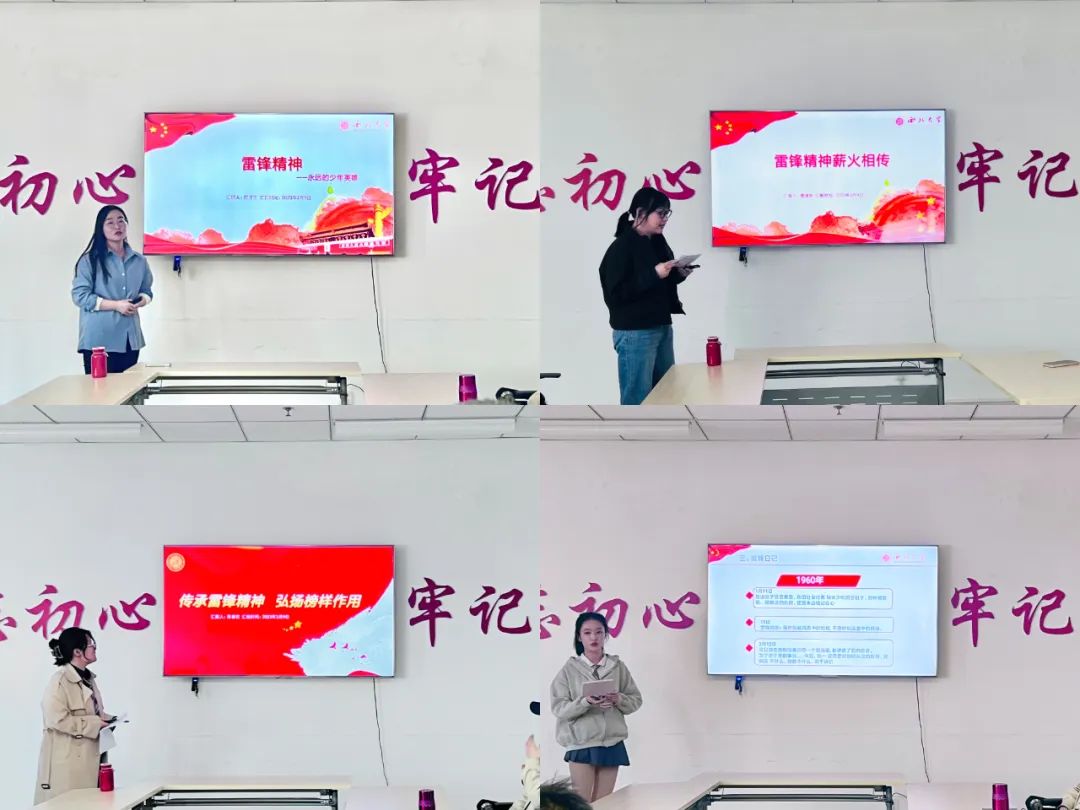 在支部书记韩晓丽同志的组织下,支部成员对雷锋精神的时代价值展开了激烈的讨论。慎佳欢同志以时代楷模、道德模范等新时代的“雷锋们”的事迹为切入点展开论述,认为无论时代如何变迁,雷锋精神都不会过时。杨才玉同志认为雷锋精神在中国已经成为一种文化现象,“雷锋”的影子处处可见,例如雷锋学校、雷锋车队、学雷锋基金会等等,即使雷锋同志已经离我们而去,但是他的影响是千秋百世的。陈秦钦同志回顾雷锋的一生后,她真挚地表述了雷锋精神对自己的深刻影响。苗美琛同志通过向大家介绍自己的志愿经历,从实践的角度阐述了自己对雷锋精神的理解。