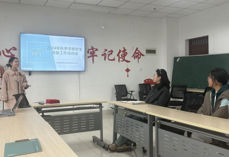 会议第一项,刘如霞同学进行资助工作培训并对2024-2025学年上半学期学院资助工作开展情况进行汇报。重点从资助工作材料填写细节、材料报送流程、工作如何效率化等方面展开培训,成员们受益匪浅。