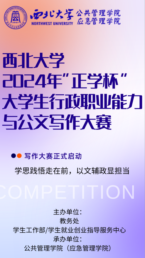 报名啦!西北大学2024年“正学杯”大学生行政职业能力与公文写作大赛启动