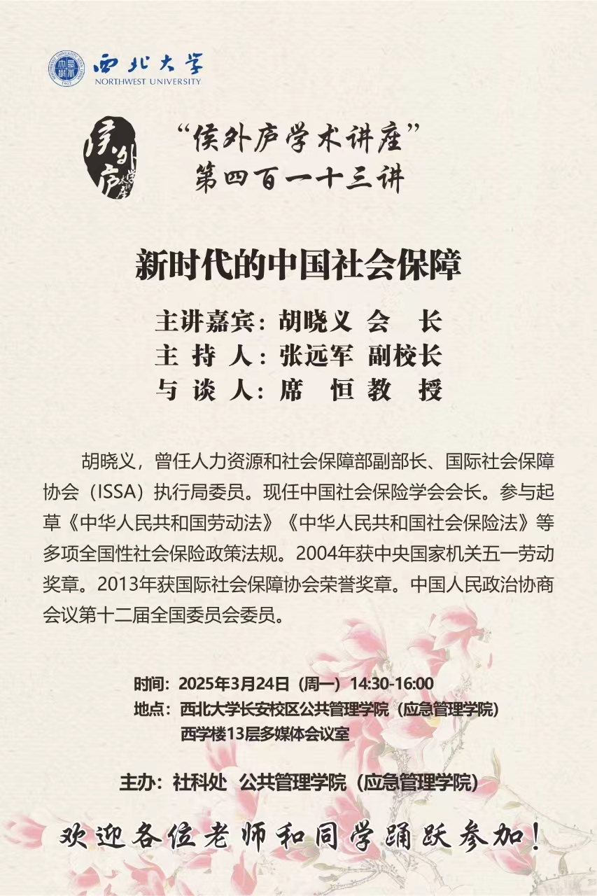 会议预告 | “侯外庐学术讲座” 第四百一十三讲 新时代的中国社会保障