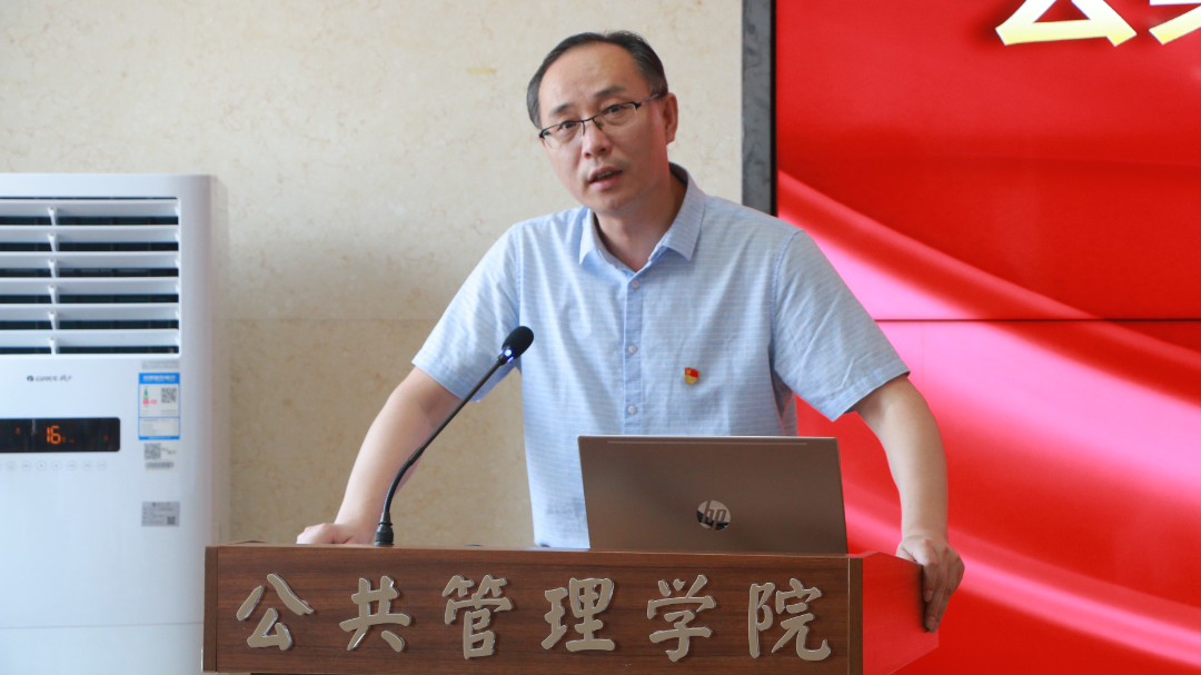 大会第八项,校党委常委、副校长奚家米同志作总结致辞,他代表校党委向受到表彰的先进集体和先进个人表示祝贺,向为学校发展做出贡献的广大教职员工与全体学生表示感谢与慰问。奚校长肯定了学院近年来党建事业发展取得的可喜成绩,鼓励学院党委再接再厉,以高质量党建引领新时代高水平学院发展,团结带领广大公管学子成为有理想、敢担当、能吃苦、肯奋斗的新时代青年,并对学院师生提出三点希望:一是要深学细悟百年党史,传承红色基因。在党史学习中悟透党的创新理论、核心思想及先进做法,加强思想政治建设,成为有力量的红色基因传承者。二是要不断练就过硬本领,在实践中学习。广大党员干部要全面提高个人素质,锤炼“七种能力”,敢于担当,敢于拼搏;青年学生党员要把学习作为首要任务,坚持学以致用,勇于实践。三是要不忘初心勇毅前行,争做时代新人。要把个人理想追求融入党和国家事业之中”,不忘初心,勇担使命,在奋斗中书写人生华章。