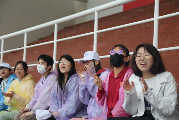 风雨中,同学们激情呐喊